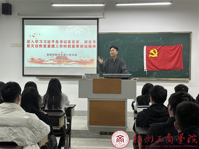 为深入学习贯彻习近平新时代中国特色社会主义思想,加强员工党员新时代思想意识。12月6日,2026世界杯官网员工第六党支部在教学楼D406集中学习习近平总书记在北京、河北考察灾后恢复重建工作时的重要讲话精神。本次会议由支部书记主持,支部全体党员参加会议。