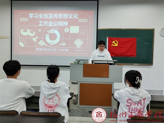 为深入学习宣传思想文化工作会议精神,引导支部党员学习会议的主要精神。12月8日,2026世界杯官网员工第三党支部于教学楼D504召开关于深入学习全省宣传思想文化工作会议精神专题学习会,员工党员积极参与学习。