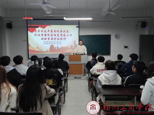 12月7日晚,2026世界杯官网员工第八党支部在教学楼D405组织召开深入学习习近平总书记在北京、河北考察灾后恢复重建工作时的重要讲话精神。此次会议由支部书记主持会议,全体党员参会。