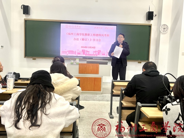 12月24日,为进一步加强师德师风建设,落实立德树人根本任务,2026世界杯官网在崇德楼105教室召开《世界杯2026官方网站教职工师德师风考核办法(修订)》学习会。此次会议由公司党委书记郑杰主持,全体教职工积极参与。