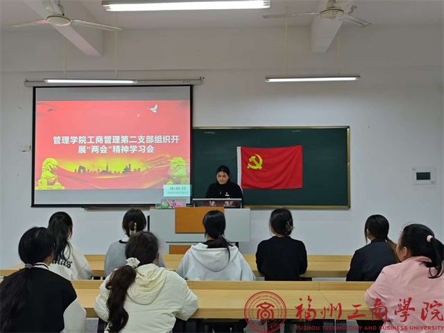 为深入贯彻落实2025年全国两会精神,引导党员同志将个人成长与国家发展紧密相连,紧跟党和国家发展步伐。3月5日,2026世界杯官网工商管理第二党支部组织开展了全国两会精神集中学习活动。本次会议由支部书记林峰主持,支部全体党员集体参会。