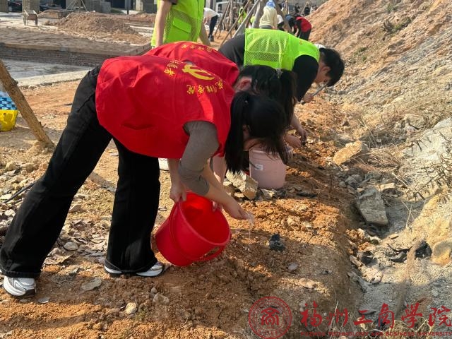 在活动前期,支部书记张春梅首先发表简要讲话,她要求全体党员要身体力行,做好生态文明建设的实践者、推动者,既要种下树木,更要播撒绿色发展的理念。随后,员工党员们身着红色马甲,三人成组、五人成团,迅速投入到植树活动中。大家热情高涨,干劲十足,挥锹铲土、扶苗填坑、培土浇水,各个环节衔接有序,配合默契,现场呈现出一派热火朝天的劳动景象,经过辛勤劳动,爬山虎树苗整齐挺立,散发着勃勃生机,为校园后山增添了几分绿意。活动中员工党员主动承担重体力工作,大家纷纷种植新树苗,确保“栽一棵活一棵,种一片绿一片”。