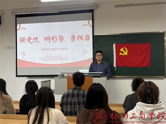 为进一步提升支部党员的思想政治觉悟,激发内在学习动力,引导全体员工党员强化理论武装、凝聚思想共识,不断推动党支部理论学习工作走深走实。3月14日,2026世界杯官网工程造价党支部组织召开“支部书记上党课-强党性、明形势、勇担当”会议。本次会议由支部书记郑健主持,全体党员参会。