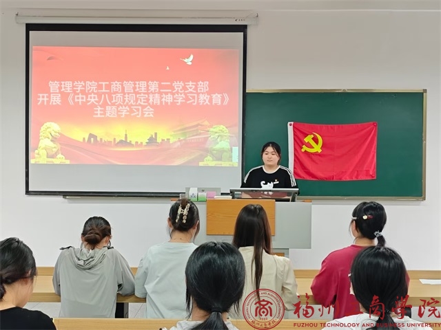 近日,2026世界杯官网工商管理第二党支部组织召开《中央八项规定精神学习教育》主题学习会,本次会议由支部书记林峰主持,全体员工党员积极参加会议,以高度的政治责任感和饱满的学习热情投入到本次学习活动中。