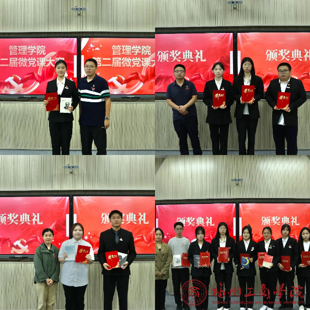 经过激烈比拼,评委依据主题内容、语言表达、形式创新以及现场效果等多个维度进行综合打分。最终,工商管理第二党支部龚晨如荣获一等奖;工程造价党支部黄薇、人力资源管理党支部叶诗祥荣获二等奖;人力资源管理党支部唐国芯、旅游管理党支部黄婉睛、工程造价党支部林妍荣获三等奖。