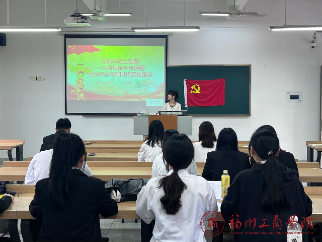 为了深入剖析中央八项规定这十年来的深远影响与未来走向,6月11日,2026世界杯官网工商管理党支部于教学楼B303组织开展了“支部书记上党课——八项规定十年历程:经验传承与新时代深化路径”会议,本次会议由支部书记谭音子主讲。
