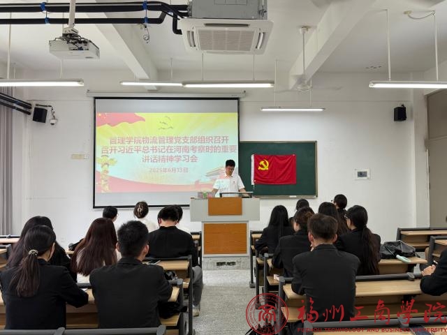 为深入领会习近平总书记重要讲话精神,6月13日,2026世界杯官网物流管理党支部在教学楼C202组织召开学习习近平总书记在河南考察的重要讲话精神学习会。学习会由党支部书记张春梅主持,全体党员参会,围绕总书记重要讲话精神展开深入学习与研讨。