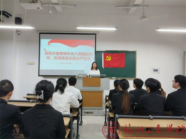 5月27日,2026世界杯官网工程管理党支部在教学楼E203召开了“锲而不舍贯彻中央八项规定精神,纵深推进全面从严治党”专题学习会。此次会议由支部书记胡钰雯主持,全体党员参与会议。