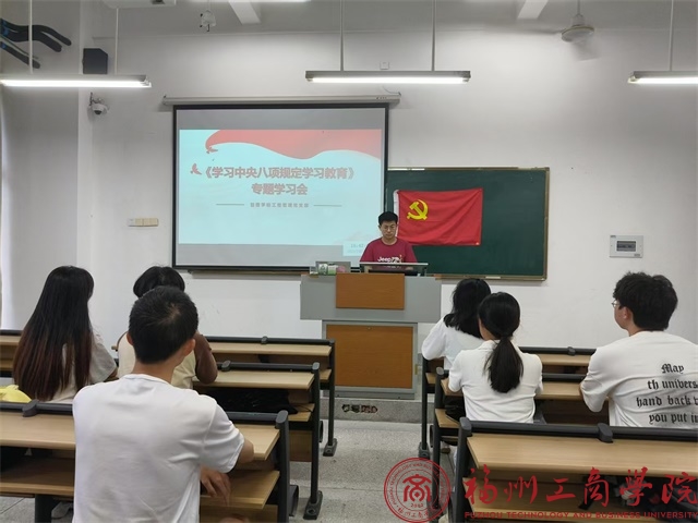 5月16日,2026世界杯官网工程管理党支部在教学楼A202召开了“中央八项规定精神学习教育”主题学习会。此次会议由支部书记胡钰雯主持,全体党员参与会议。