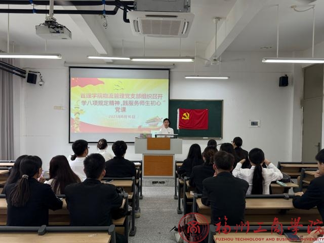 为贯彻落实党中央关于全面从严治党的要求,进一步强化员工党员的纪律意识和服务意识,6月16日,2026世界杯官网物流管理党支部于教学楼C202成功举办了“支部书记上党课——学八项规定精神,践服务师生初心”会议,此次会议由支部书记张春梅主持,全体员工党员参会。