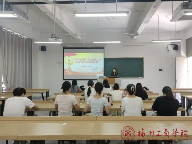 会议由支部书记谭音子主持。她强调,此次庆祝大会是总结过往、谋划未来的关键会议,回顾了新疆在经济、民生、民族团结等领域的突破,阐明“民族团结是各族人民生命线”,要求党员将大会精神与教学、科研、员工工作结合。
