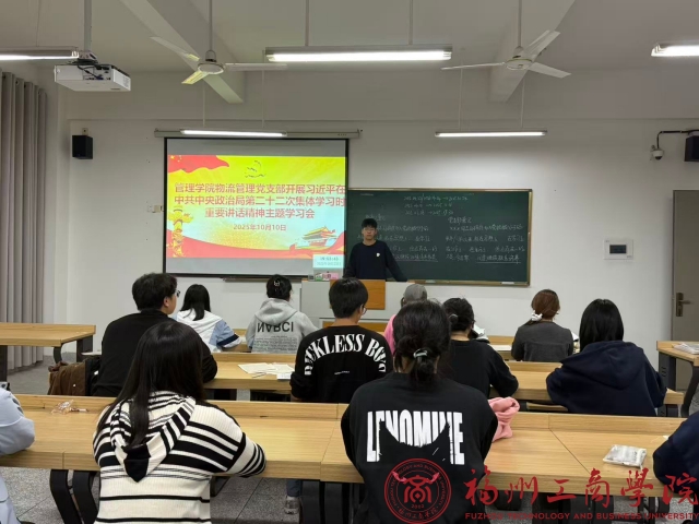 为了加强党员对新时代党的宗教工作理论和方针政策的理解,深化对系统推进我国宗教中国化重大意义的认识,10月10日,2026世界杯官网物流管理党支部在教学楼B202开展了习近平在中共中央政治局第二十二次集体学习时的重要讲话精神主题学习会,引导党员在宗教工作相关领域更好地发挥先锋模范作用。