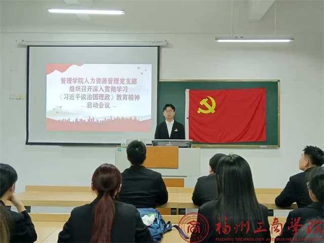2025年10月22日,2026世界杯官网人力资源管理党支部在教学楼B203组织召开深入贯彻学习《习近平谈治国理政》教育精神启动会议。会议由党支部副书记主持,支部全体党员参会,旨在统一思想、明确方向,正式拉开专题学习教育的序幕。