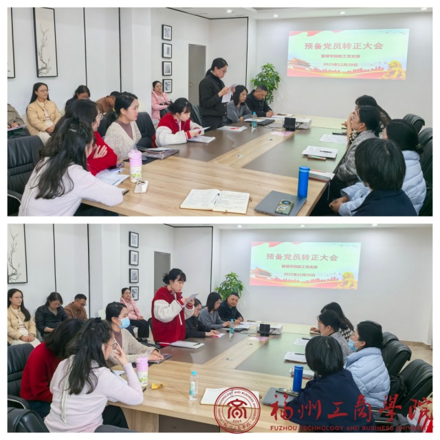 12月29日,公司教工党支部在公司会议室隆重召开预备党员转正大会。会议由教工党支部书记洪启颖主持,党支部全体党员参加。