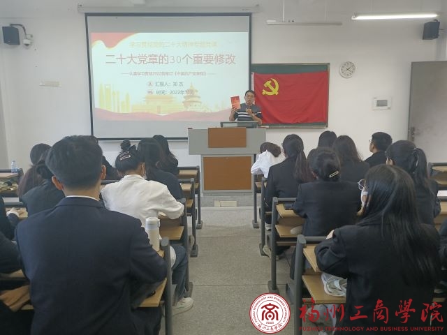 首次课程,郑杰书记围绕“二十大党章的30个重要修改 ”展开授课,从党的建设理论创新、实践创新、制度创新成果出发,阐述了修改党章是深入推进新时代党的建设新的伟大工程的需要。指导发展对象们把学习贯彻党的二十大精神作为首要政治任务,坚决拥护“两个确立”、坚决做到“两个维护”,以高度政治自觉守好“红色根脉”,奋力当好“六个示范引领者”。要求全体学员对党章学习必须做到入脑入心,外化于行,知行合一,坚定理想信念,强化政治意识,树立清风正气,勇于担当作为,为成为一位合格的共产党员而不懈努力。