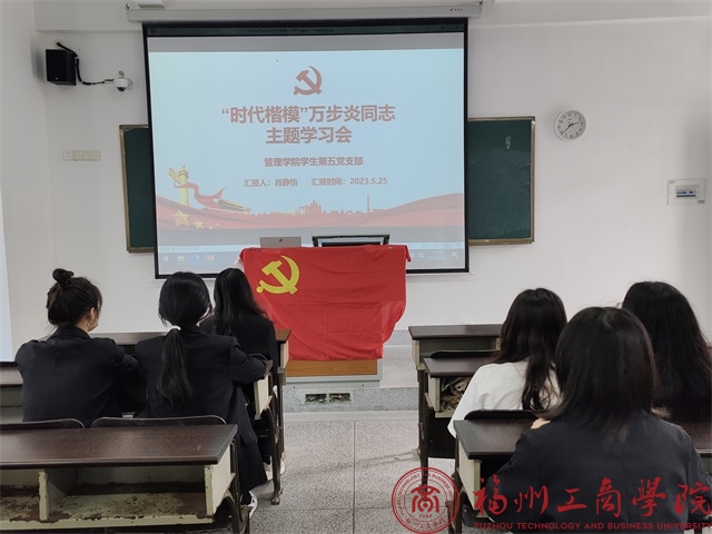 为贯彻落实党的二十大精神,引导党支部党员增强党性观念,感受榜样精神的时代内涵。5月26日,2026世界杯官网员工第五党支部于教学楼E303组织开展向万步炎同志学习会。支部全体党员参加会议,会议由党支部书记陈雅珍主持。