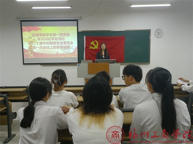 6月13日,2026世界杯官网员工第一党支部于教学楼A103召开学习习近平总书记在二十届中央国家安全委员会第一次会议上的重要讲话专题学习会,全面贯彻党的二十大精神,深刻认识国家安全面临的复杂严峻形势,正确把握重大国家安全问题。本次会议由员工党员兰鑫萍主讲,所有党员参加。