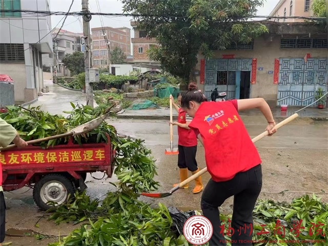 骤雨初歇,管院员工党员林莹莹积极响应锦丰村党组织的号召在锦丰村迅速开展恢复工作。林莹莹同志在锦丰村党组织的统一领导下,第一时间开展全面的灾后恢复、隐患排查等工作。劝导村民远离危房,疏散危险区域人群,并及时进行清扫、清障、运输工作,保障道路整洁畅通,以实际行动确保群众的生命财产安全。