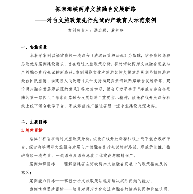 探索海峡两岸文旅融合发展新路|对台文旅政策先行先试的产教育人示范案例