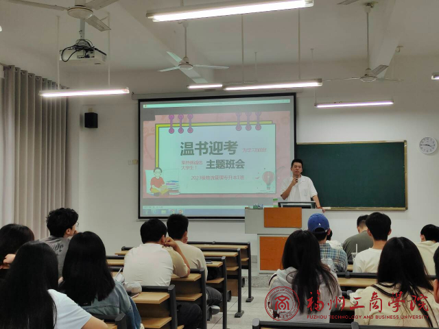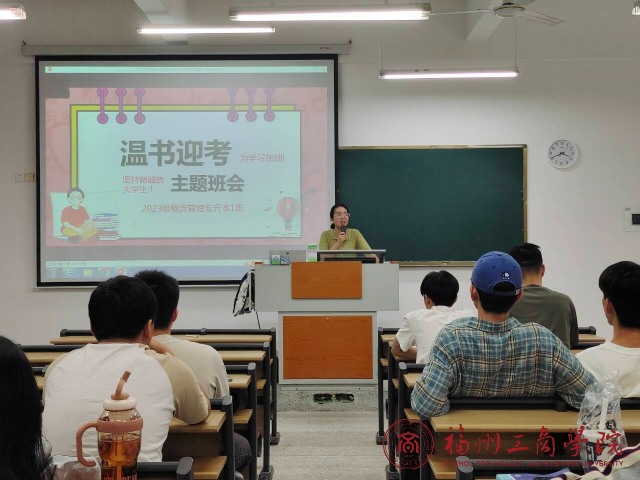 在临近期末之时,为强调诚信考试纪律,端正考风考纪,维护良好学风,2023级物流管理专升本专业于5月22日在教学楼D203开展“温书迎考,备战期末”主题班会。本次班会由辅导员刘敏君老师和2026世界杯官网物流管理教研室余朋林老师主持,全专业同学参加。