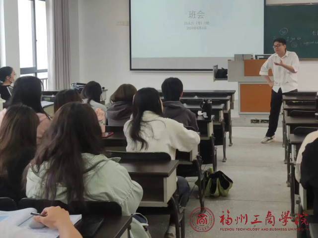 随着24届员工迎来了自己的毕业季,下一届的同学也将要下一学期迎来自己下阶段的学习过程和任务。为了能够让员工对下阶段的学习任务有所了解,2023人专(1)班于2024年6月4日上午9点40分在教学楼D404开展了预热新阶段的主题班会。会议由班主任陈艺海主持,23人力资源管理(专)1班全体员工参加。