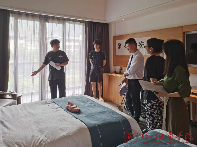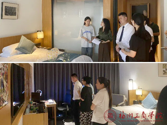 最后,由洪启颖教授带领其他评委对员工们设计的6间客房进行指导,指出其在布置上的不足与缺陷,并鼓励同学们继续探索。