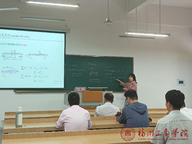 本次磨课教研活动以参加青年教师教学竞赛为目标,邀请参赛选手叶倩华老师以《工程力学》课程的“弯曲变形”这节课的内容进行讲解,通过“2023年齐齐哈尔体育馆坍塌事故”案例做出导入,详细介绍了弯曲变形的概念及计算要点,并使用一道例题进行过程讲解。接着,公司副经理吴能森教授对讲课情况进行了点评,在肯定教学效果的同时也指出不足之处,希望老师们都能一起提高。随后,老师们也提出自己的改进意见。
