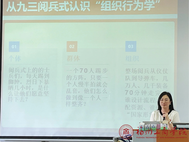 李凡老师根据过去的教学经验,结合本班的学情情况,设计了本次真实情景课堂。总议题为“从九三阅兵式认识“组织行为学”,分设三个子议题:子议题1:个体层面,阅兵式上的的士兵们,每天踢到脚肿,烈日下暴晒几小时,是什么让他们愿意坚持下去?子议题2:一个70人踢步的方阵,只要一个人慢半拍就会乱套,他们怎么做到像一个人一样整齐?子议题3:整场阅兵从仪仗队到导弹车,几万人、几千装备70分钟走完,谁设计流程、谁配资源、谁传递“国家形象”?。三个学习活动依序展开,员工们积极参与,讨论环节气氛热烈,大家纷纷举手发言,各抒己见,课堂氛围活跃。有的员工还主动分享了自己在团队项目中的亲身经历,与阅兵案例相互印证,进一步加深了对组织行为学的理解。本次课程以数据为“钥匙”、以时事为“剧本”,把组织行为学里“个体—群体—组织”三层密码翻译成人人能懂的“大白话”,让员工原来觉得拗口生涩的概变得通俗易懂,很好的激发了员工的学习兴趣。