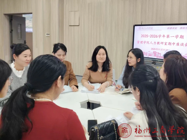 11月11日,人力资源管理教研室于崇德楼503室召开期中教学座谈会,全体教师参加。会议由教研室主任王烨烨主持,围绕本学期期中教学检查反馈展开研讨,旨在总结教学成效、分析存在问题、明确改进方向。