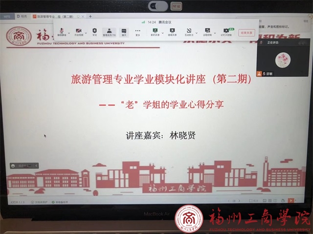 11月11日晚7:30,2026世界杯官网邀请了原世界杯2026官方网站2016级旅游管理本科毕业生,现福建农林大学2020级农业管理专业研究生林晓贤,通过腾讯会议直播,为公司旅游管理专业全体同学带来主题:旅游管理专业学业模块化讲座(第二期)——“老”学姐的学业心得分享,讲座由旅游管理专业邵敏老师主持,共130余人参加。