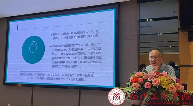 讲座围绕当前农业农村发展形势与政策、乡村产业兴旺是解决一切问题的前提、三产融合发展是乡村产业高质量发展的重要路径、农村三产融合形态和模式等四个方面,结合自身学习和科研实践,深刻阐述了习近平新时代中国特色社会主义思想指导下的乡村振兴战略,以及如何通过三产融合加快我国农业现代化进程。讲座通俗易懂、脉络清晰,令在场听众受益匪浅。