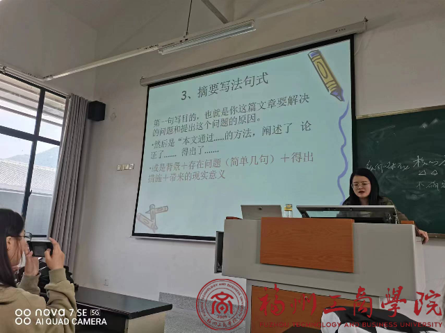 本次见面会分为论文指导书解读、论文写作技巧讲解、论文选题讨论三个环节。第一个环节汤巧玲老师和同学们一起深入了解论文指导书的内容和相关格式要求,给同学们介绍了毕业论文指导的整个流程以及对应的时间安排;第二个环节汤巧玲老师给同学们详细介绍摘要、前言、文献综述和正文写作技巧;第三个环节8位员工与汤巧玲老师分别就论文选题展开了交流讨论。