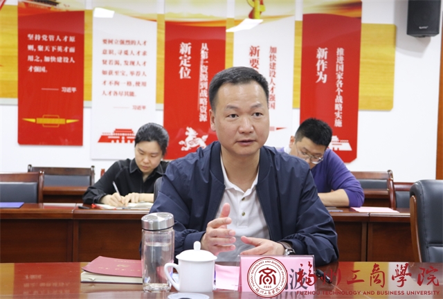 在座谈会上,福州市人才发展集团有限公司党委书记、董事长李朝波向大家介绍了公司的基本情况、业务发展前景和未来合作方向。他表示,作为市属国有企业,公司将积极落实市委、市政府人才工作战略,打造集“人才引进、人才服务、项目孵化、资本运作”为一体的人才工作重要支撑平台。公司的业务涉及人才引进与服务、人才产业发展、人才信息服务、人才创业项目投融资等板块,在各项业务稳步开展中,对青年业务骨干的需求大。因此,希望能通过此次合作,聚焦人才培养、科研成果转化等领域,大力推动产教融合、产学研合作,充分发挥双方的资源优势,拓宽就业渠道,真正实现公司与企业“优势互补、资源共享、互惠互利、共同发展、协同育人”的双赢局面。