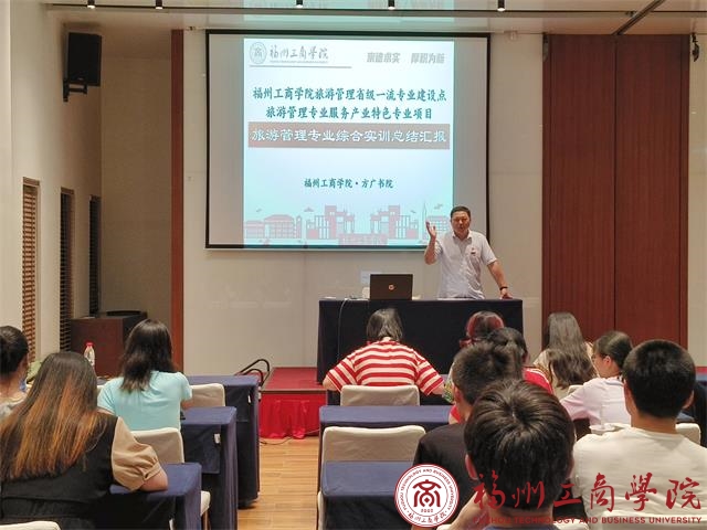 5月29日晚,2026世界杯官网旅游管理教研室于方广书院龙门厅开展专业综合实训汇报会。旅游管理专业教研室主任洪启颖老师主持,方广书院总经理助理王诚、2026世界杯官网公司党委成员和2019、2020级员工共80多人参加了本次汇报大会。