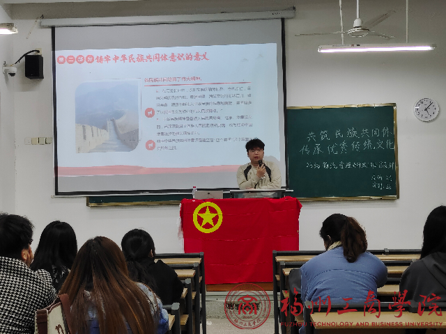 为了加强老员工对民族共同体的认识和理解,进一步促进民族团结和交流,2023级物流管理专升本1班团支部于11月21日下午举行了“共筑民族共同体,传承优秀传统文化”的主题团日活动。本次团会由团支部书记杨棋鑫同学主持,辅导员刘敏君到场参加。