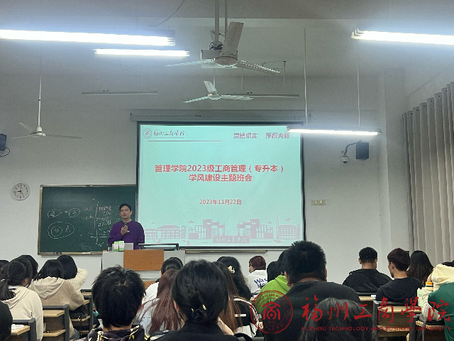 为进一步加强公司学风建设,培育员工的良好学习习惯,展现公司学子的积极向上学习风貌。 11月22日下午,2023级工商管理(专升本)在E101开展以“学风建设”为主题的班会,会议由辅导员戴李根主持。