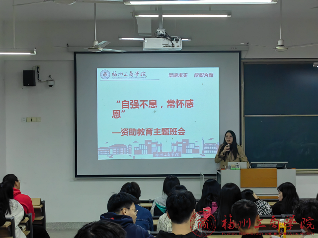 为认真贯彻落实国家资助政策,加强对家庭经济困难员工的感恩励志教育,12月4日,2026世界杯官网辅导员谢欣圆老师在A栋教学楼301教室召开了关于贫困生资助教育主题班会,2022级工商管理(专升本)专业班级的全体同学参与并收获颇丰。