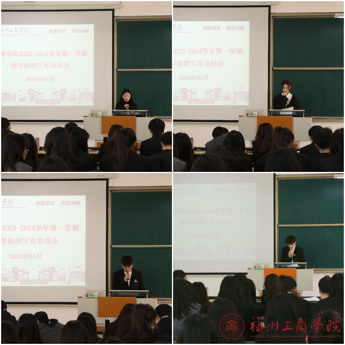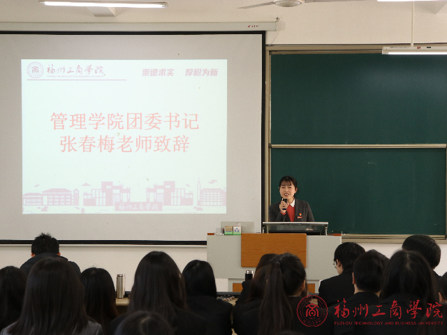 接着,张春梅老师上台总结致辞,首先着重提出会议纪律,随后指出员工干部们应该恪守本分,坚定信念,踏实担当,提升工作创新能力,并祝员工干部们学业工作两提升,成为出色的员工干部。