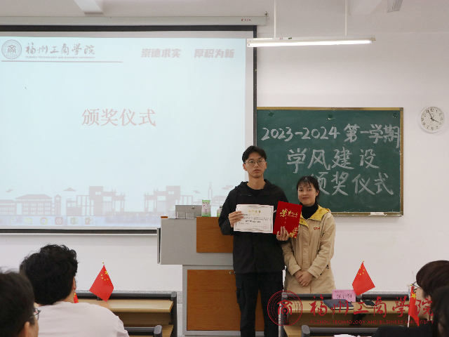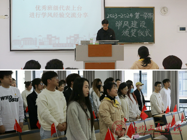 活动伊始,全体进行校歌合唱,由辅导员致开幕词;之后公司对在2023-2024学年第一学期在学风建设中表现突出的班级进行表彰。