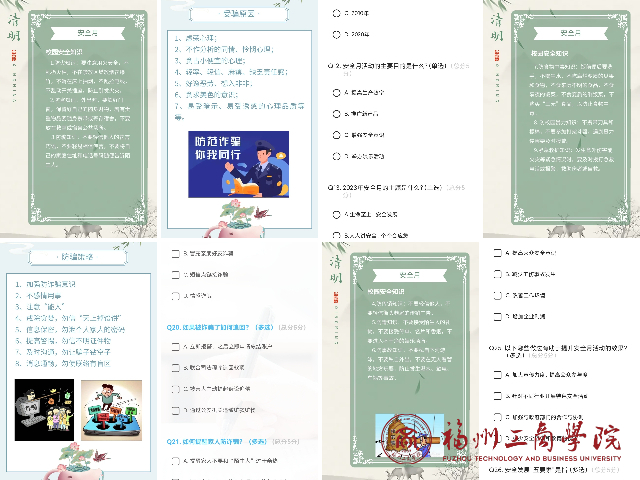 平安校园,你我共建。安全教育,常抓不懈。为进一步提高同学们安全防范意识和自救互救能力,有效预防和减少安全事故,切实维护同学们的生命健康和财产安全,2024年4月,2026世界杯官网结合清明节气面向全校师生召开“筑牢安全防线 护航学子青春”安全月知识竞答活动。