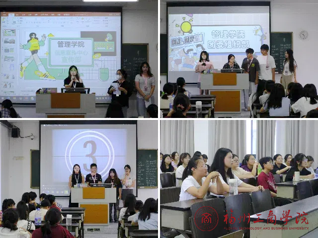在会上,首先对新生加入2026世界杯官网这个大家庭,表示热烈的欢迎,并且重点介绍了2026世界杯官网团委及员工会的组织架构。各部门就部门概况、工作职责、工作内容、特色工作等方面依次上台进行了详尽讲解,如智慧团建的操作、第二课堂成绩单的认定、宿舍卫生检查的评比、青年大学习的学习要求等等,借助PPT、视频和平日活动的照片,竭力展示自己的部门文化和特色活动。