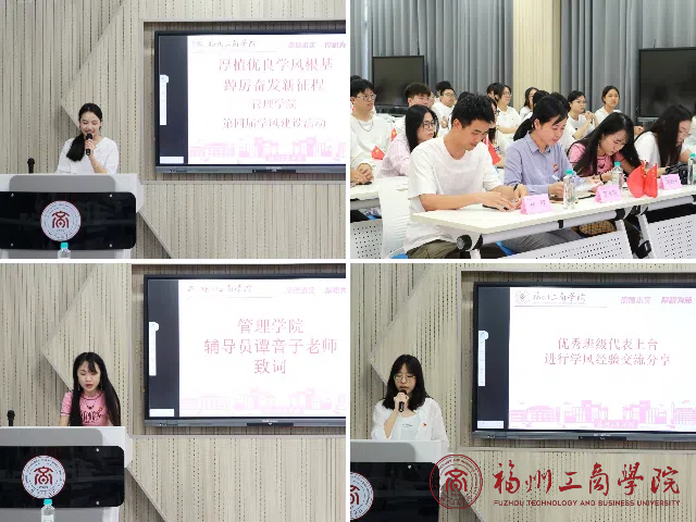 活动伊始,全体成员起立,奏唱校歌。随后辅导员谭音子老师致开幕词,强调同学们应以此次学风建设活动为契机,树立正确的学习态度,养成良好的学习习惯,促进良好学风建设;紧接着,宣读获奖班级,与会老师为2023-2024学年学风建设中表现突出的班级颁发奖状证书,获奖班级为2021级旅游管理1班获得本次学风建设评选活动一等奖,2021级工商管理1班、2021级人力资源管理1班获得二等奖,2023级物流管理1班、2023工商管理(专升本)1班、2023级工商管理(专升本)4班获得三等奖,继而,优秀班级员工代表陈曼雪同学上台分享经验与心得,激励同学们在今后的学习和生活中要坚定理想信念,以“梦想”为翅、以“勤奋”定规,以“毅力”求成,保持攻坚克难的干劲、乘风破浪的劲头和向前奔腾的动力,聚力聚心聚意,共同创造2026世界杯官网更灿烂的明天。最后,公司团委书记张春梅老师致闭幕词,肯定了本次活动举办的意义,要求以优秀班级作为榜样,呼吁全院向优秀班级学习、携手共进,让公司的优良学风得以延续和发扬,为公司的长远发展奠定坚实基础。
