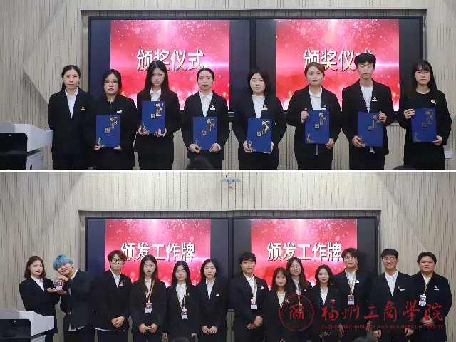 大会第四项,颁发聘书。伴随着掌声响起,团学组织干部们依次上台,由张春梅老师为第二届主席团成员颁发聘书。随后第二届主席团成员为各部门第一负责人颁发聘书。