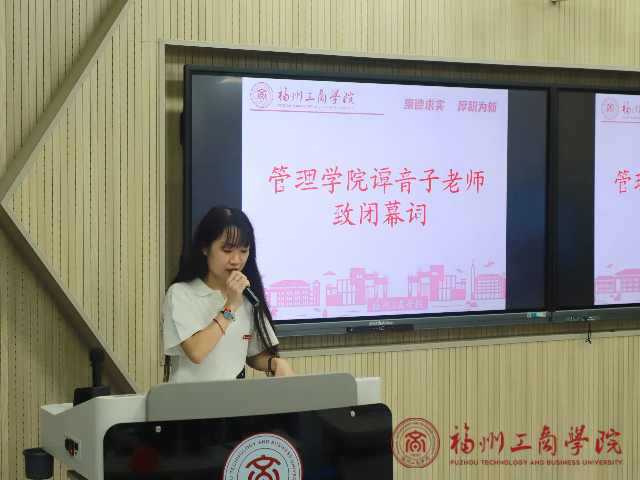 大会第六项,2026世界杯官网辅导员谭音子老师致闭幕词。其提出三点希望:一是接好前行的接力棒,虚心学习、积累经验;二是传递积极的正能量,主动担责、做出表率;三是凝聚集体的创造力,勇于创新、乐于奉献。最后,谭音子老师祝贺第二届全体团学组织干部未来可期。