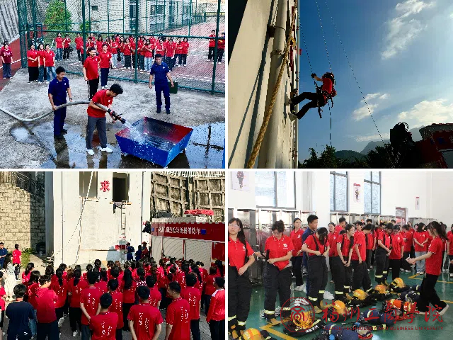 在活动前期准备中,团支书统领全局,协调各方,积极联系相关消防人员,班级团支委动员同学踊跃参与。到达葛岭消防站,消防中队人员带领团支部参观营区。站内,内务整齐,展现消防队伍的纪律风采,诠释“崇德”之内涵。随后,同学们体验了伙食、灭火、四百米物资疏散等,以“求实”态度掌握技能,而逃生技巧学习则是“厚积”知识。