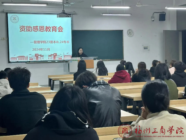 11月12日,公司召开以资助育人、筑梦助人为核心的感恩教育主题会议,此次会议面向 2023 级普本及 2024 级专本专业全体员工,旨在深入贯彻落实资助政策的同时,大力弘扬感恩精神,激发员工们的内生动力,助力他们在成长道路上奋勇前行,会议由辅导员李灵娇主持。