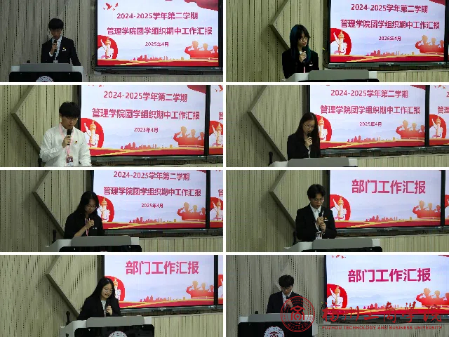 会议伊始,各部门负责人依次上台,对各自部门上半学期的工作进行详细汇报。他们从各个方面,分享工作中的亮点与不足,并提出改进建议,充分展现团学组织各部门在过去一段时间内的辛勤付出和显著成果。接着,吴雅丽同学与干部们一同学习《员工手册》的相关内容,强调遵守校规校纪的重要性,指出全体团学组织干部应身先士卒,时刻保持良好的学风和行为习惯。最后,张春梅老师对会议进行总结,指出员工干部是连接员工与公司、引领员工成长的重要角色,对于培养员工的综合素质和领导能力具有重要作用。同时,鼓励大家要继续保持积极向上的工作态度,不断创新工作方法,为公司的发展贡献更多力量。