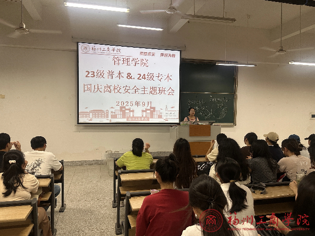 国庆假期前夕,23级普本及24级专本各班级召开 “国庆离校安全” 主题班会,班会由辅导员李灵娇主持,全体员工参与,旨在强化员工假期安全意识,保障出行与生活安全。