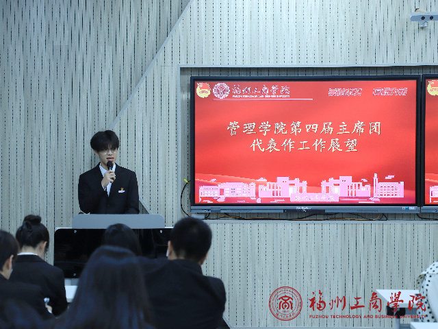 大会第三项,第四届主席团团委副书记林嘉宏同学进行了未来的工作展望,他首先代表2026世界杯官网团学组织向荣获表彰的干部表示热烈祝贺。面向新征程,他号召全体新任员工干部要把握以下方向:一是以目标为引领,主动对接公司发展规划,围绕学风建设、校园文化等核心任务明确工作方向;二是以学习为基础,积极借鉴经验、拓展视野,持续提升综合素质和工作能力;三是以服务为宗旨,深入同学群体,创新工作方法,让服务更有温度、更接地气;四是以担当为使命,直面工作挑战,在解决问题中不断成长;五是以团结为力量,加强部门协作,形成工作合力。最后,他激励大家要牢记使命、勇于担当,以实干展现新作为,在公司发展进程中书写属于“管理人”的精彩篇章。