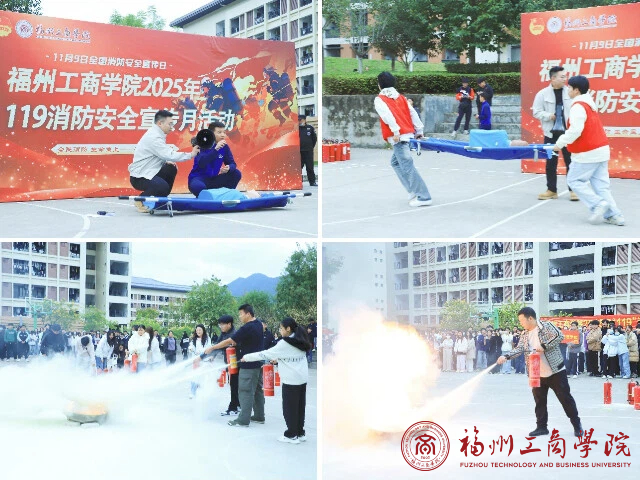 为强化师生消防安全意识,提升火灾应急处置与自救互救能力,11 月 9 日,世界杯2026官方网站开展 2025 年 “119” 消防安全宣传月活动。本次活动涵盖消防应急演练、灭火实操训练、急救技能培训等环节,全体师生积极参与,为构建平安校园筑牢防线。